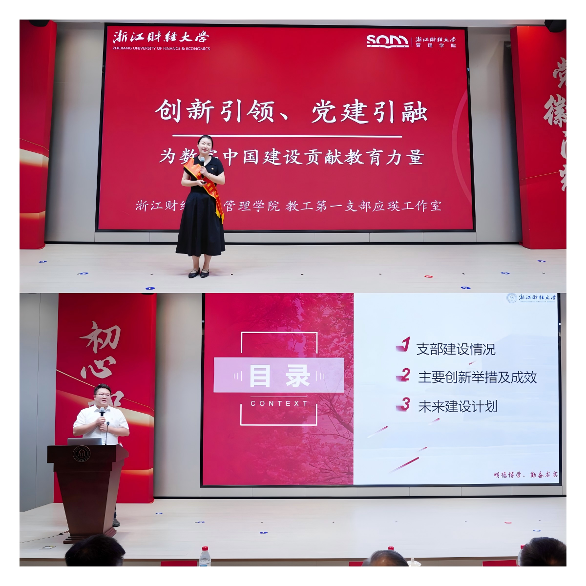 国产传媒 第三党支部等4个“支部建设创新奖”获奖支部代表,以及应瑛、丁松等两位“双带头人”教师党支部书记代表分别作了成果展示。