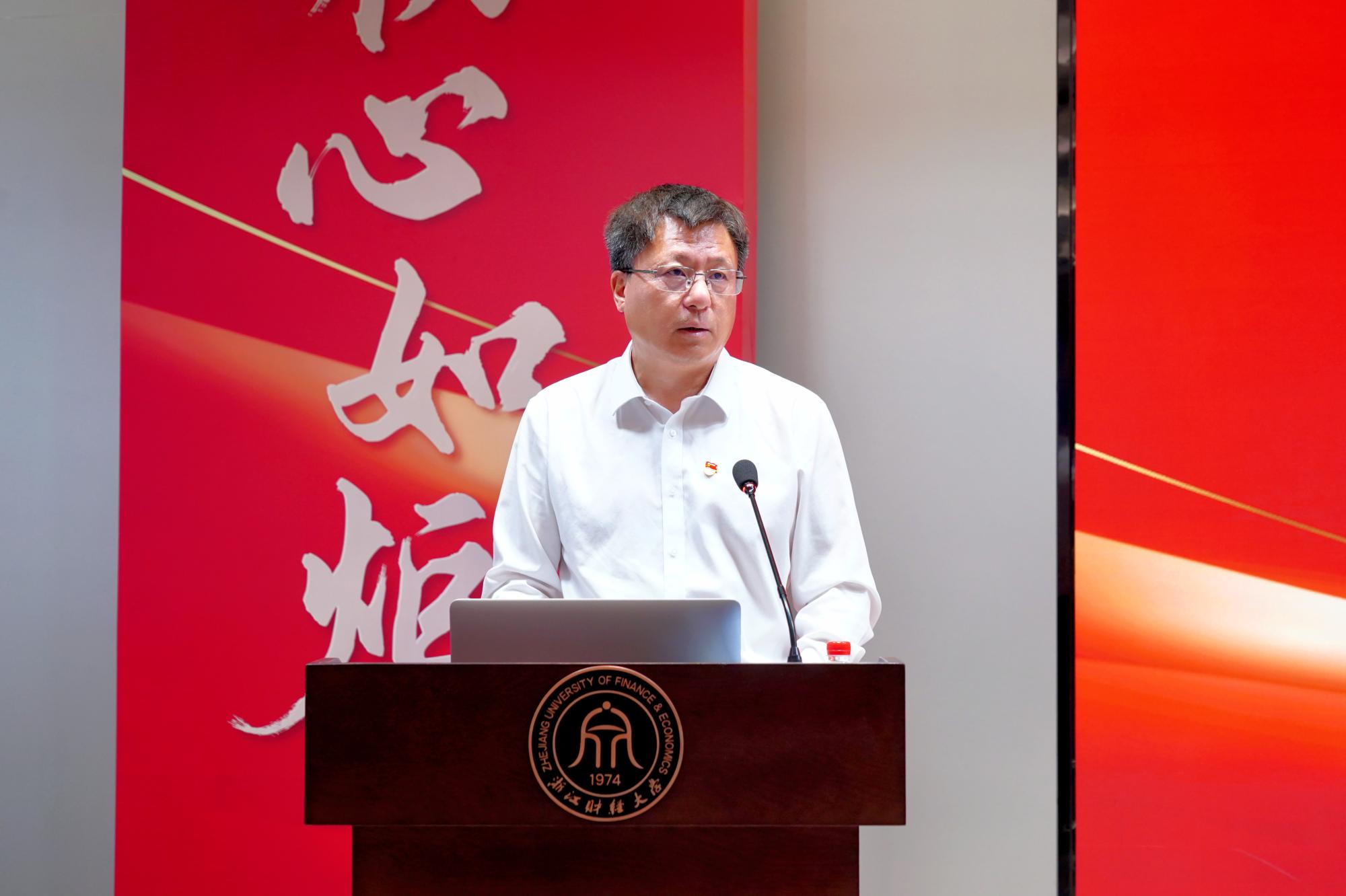 魏江充分肯定了学校在党的坚强领导下,特别是实施“新财经战略”以来取得的成就。他强调,广大师生党员要以习近平新时代中国特色社会主义思想为指引,弘扬伟大建党精神,以“浙财发展有我”的担当,坚定不移推进党建引融,加强党对学校工作的全面领导;坚定不移推进“新财经战略”,更大力度推进省高水平大学建设;坚定不移推进高质量发展,以“浙财成果”助力高等教育强省;坚定不移推进“三风”建设,培养堪当大任的时代新人,为早日建成特色鲜明的一流财经大学努力奋斗。