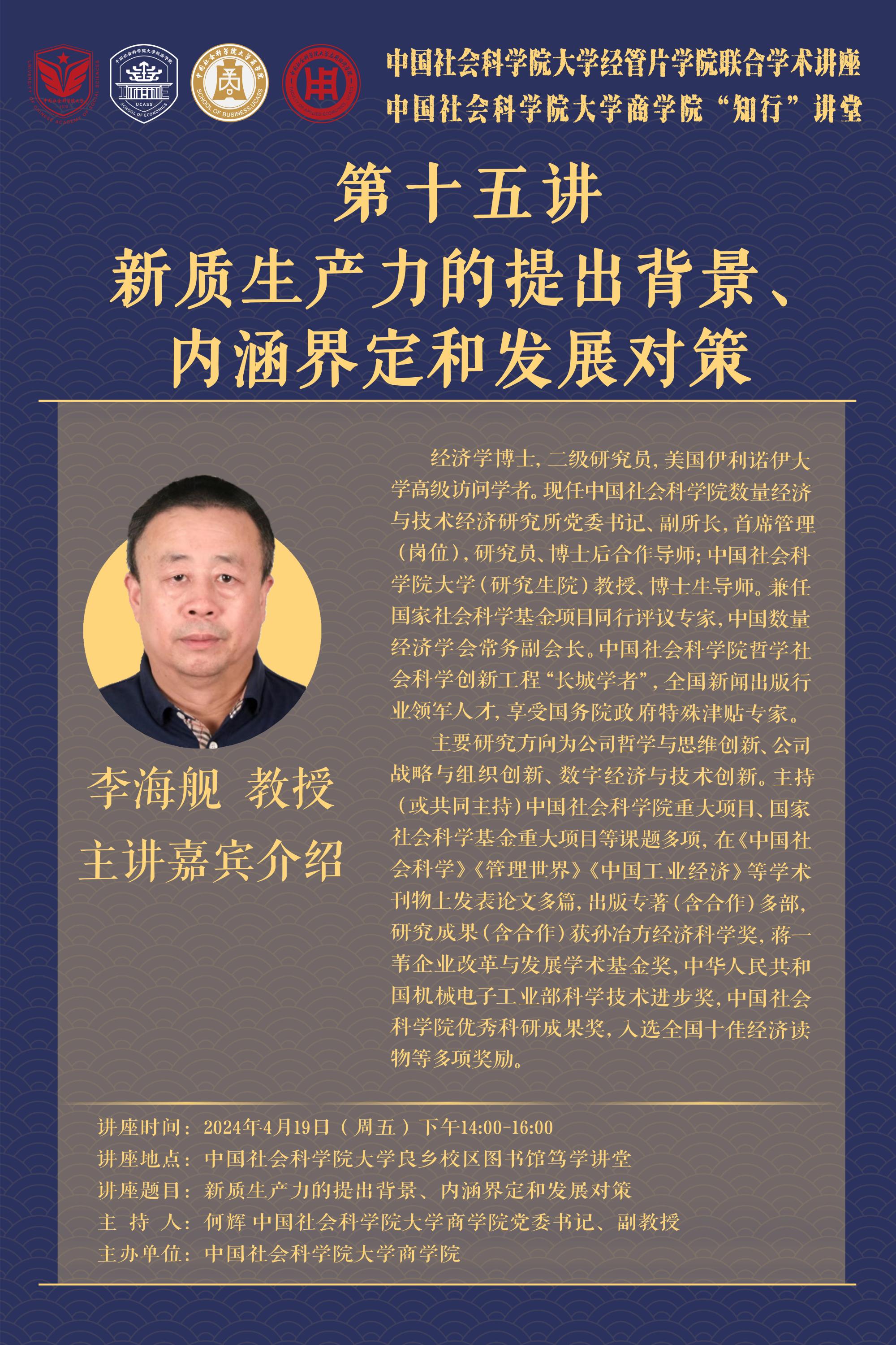 名家讲座:李海舰--新质生产力的提出背景、内涵界定和发展对策