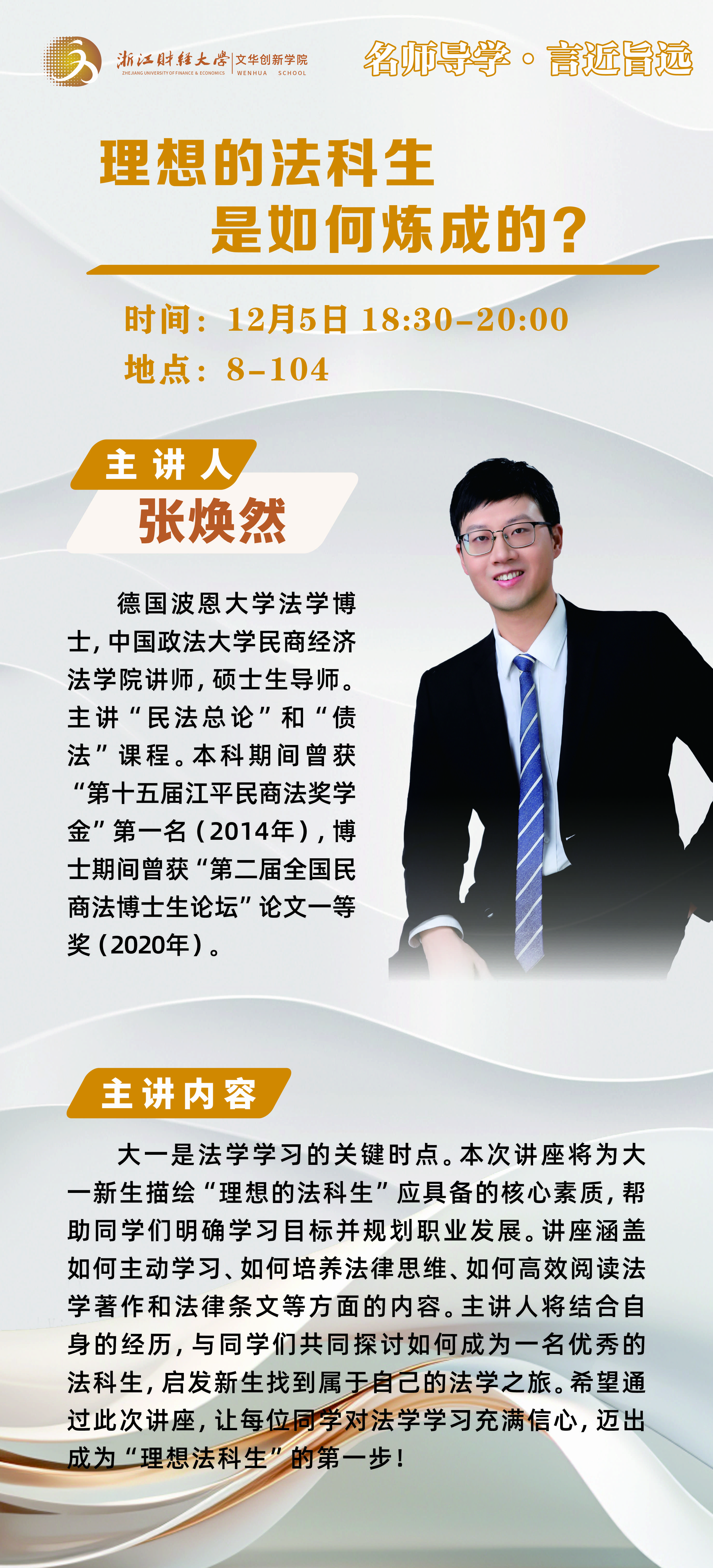 “名师导学·言近旨远”系列讲座预告:理想的法科生是如何炼成的?