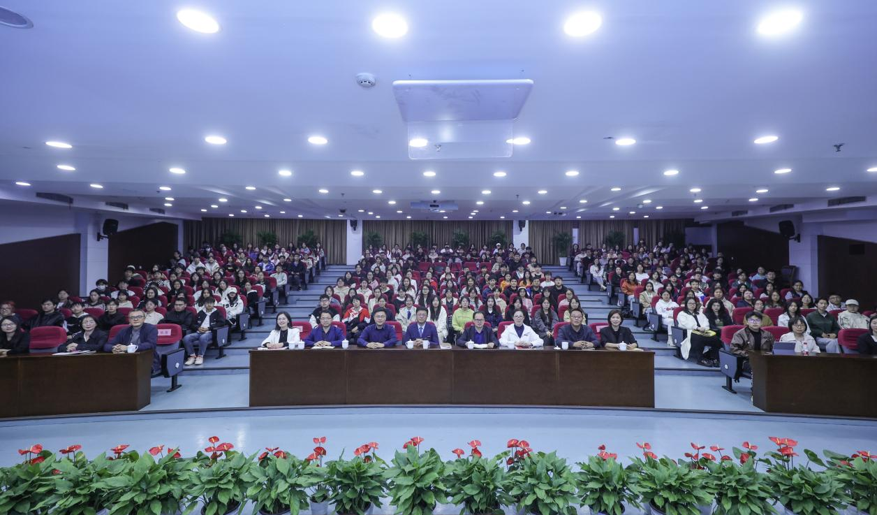 学校学术第四报告厅师生济济一堂,掌声阵阵,校党委副书记、副校长(主持行政日常工作)、国产传媒