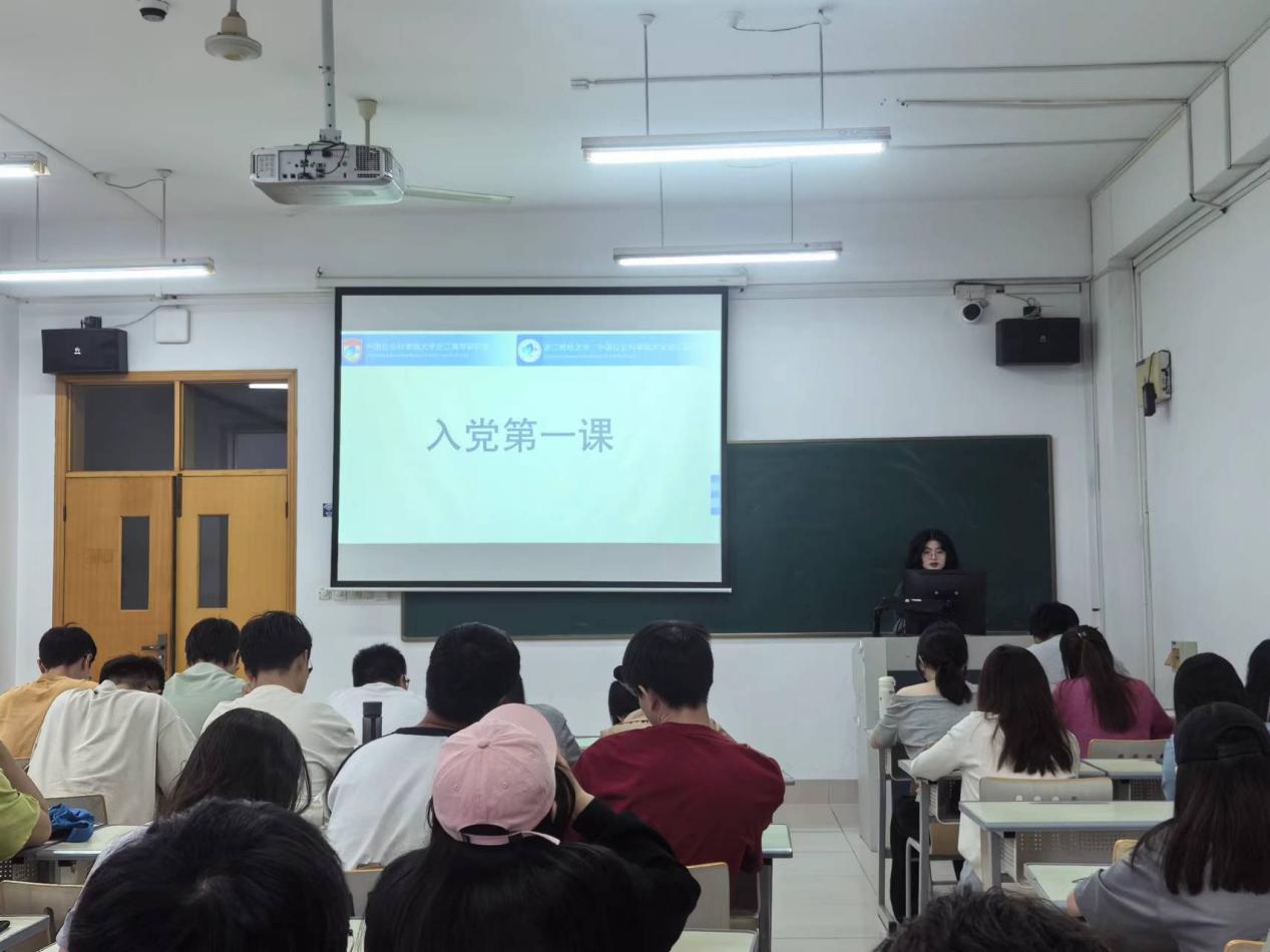 各班新生讲授专题党课。课程内容围绕了中国共产党是什么、为什么要加入中国共产党、如何尽早加入中国共产党、发展党员工作流程等方面。讲述并强调了学生在入党过程中应如何保持正确的政治方向、坚定的理想信念和崇高的道德情操,并鼓励全体新生要端正入党动机,努力学习并提升综合素质,以实际行动向党组织靠拢。