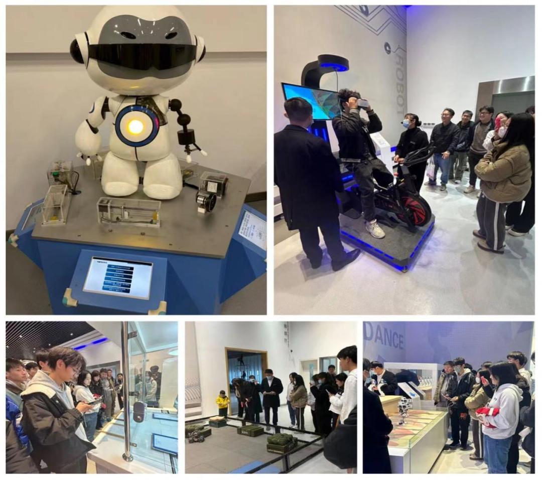 同学们首先来到机器人小镇进行参观。机器人小镇位于浙江省杭州市萧山区,是中国首个机器人小镇,以“机智融合,共创未来”为理念发展,立足机器人产业集群优势,通过“产业大脑+未来工厂”为核心的区域产业互联网平台,融合企业侧和政府侧、贯通生产端和需求端,集聚“政产研用金”各方资源,全力破解行业痛点,打造引领浙江、辐射全国的机器人行业的产业数智能力中心。
